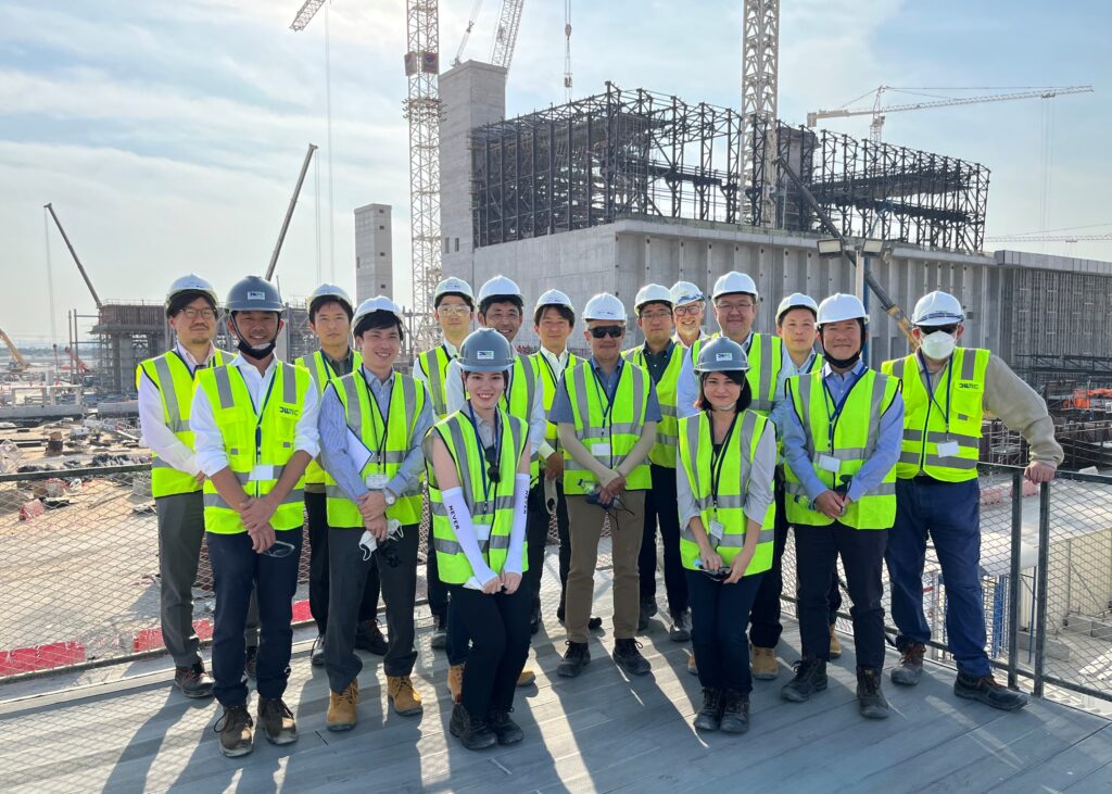 DWMC, together with one of its shareholders ITOCHU Corporation, welcomed guests from the Consulate-General of Japan in Dubai and Japan Bank for International Cooperation (JBIC) at the DWMC project site on 14th December. Following a technical presentation, the guests toured the construction site. The Consul General Mr. Sekiguchi is pictured in the center of the image, along with Mr. Toyoda Chief Representative for the Middle East of JBIC, Tim Clarke the DWMC CEO, other guests and senior members of the DWMC team.